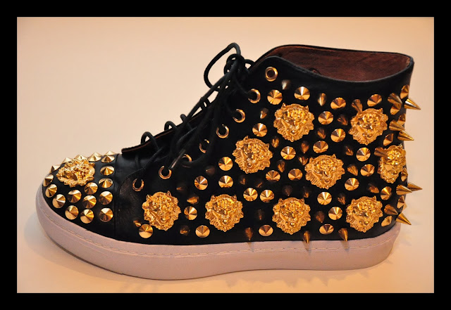 These are super playful and are embellished with gold metal spikes and lion head medallion accent details. I found these in London, England Selfridges, they had too many great styles and designers. I had a heck of a time deciding.